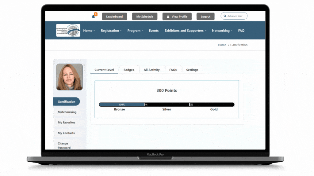 Event organizers can customize gamification rules, objectives, and rewards. Build and promote a game that generates traffic throughout your conference portal including sessions, trade shows, networking rooms, matchmaking and much more.